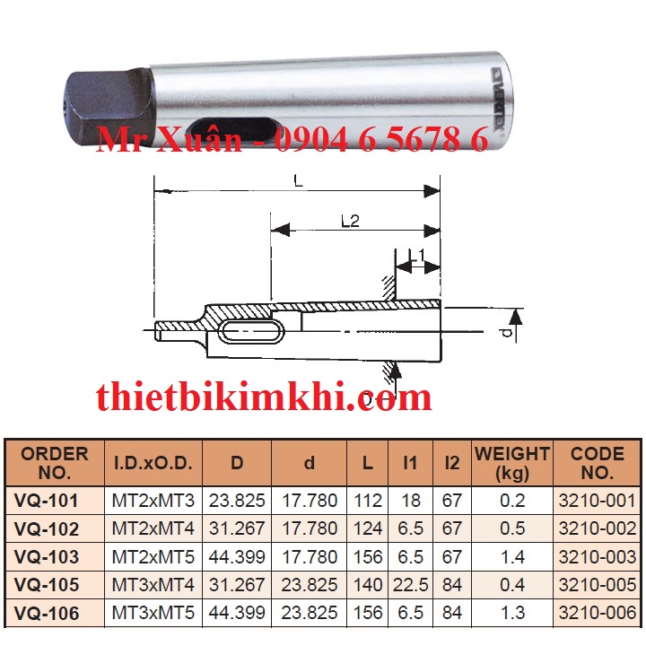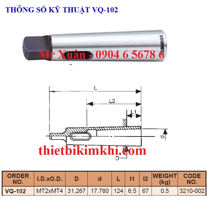 Áo côn dùng chuyển truyền chuyển động từ kiểu côn ngoài sang kiểu côn trong. Thường hay được sử dụng khi khoan với mũi khoan chuôi côn trên máy tiện và máy khoan.Với áo côn VQ-102 là chuyển từ côn ngoài MT4 sang kiểu côn trong MT2.