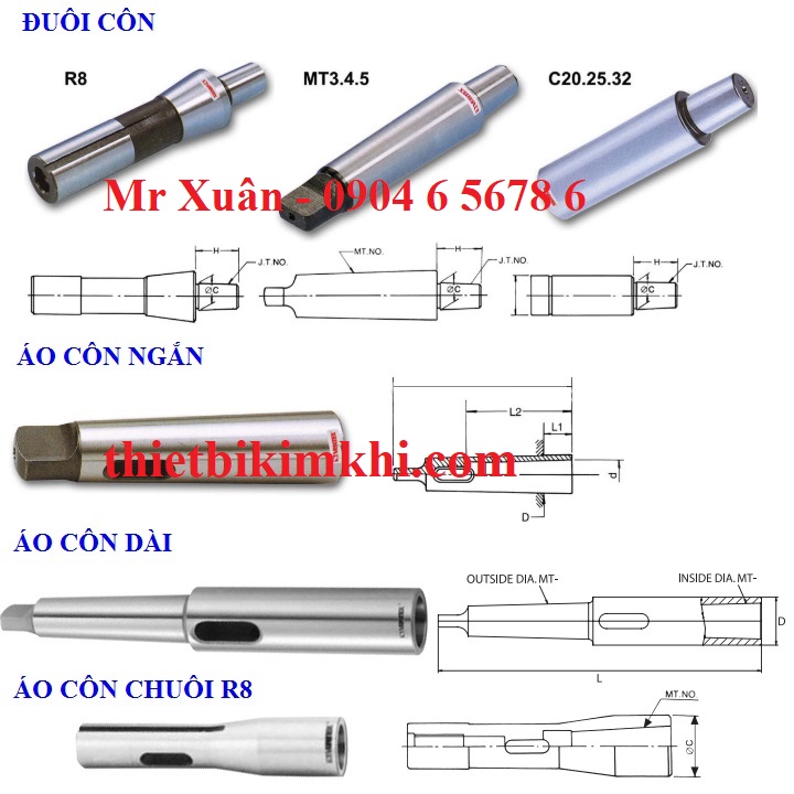 Áo côn: thường dùng để chỉ chi tiết kẹp dao cụ, đuôi côn giảm từ lớn xuống nhỏ. Ví dụ côn trục chính là MT5 muốn lắp các loại dao cụ hoặc đuôi côn MT4, MT3, MT2… tên thường gọi ở thị trường là áo côn số 6-5, áo côn số 6-4, áo côn số 5-3, áo côn số 4-2, áo côn số 4-2