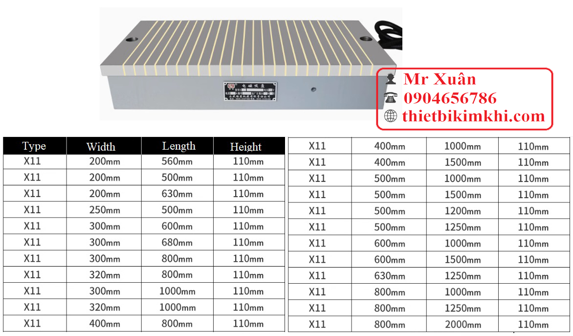 Bàn từ điện Trung Quốc lực từ 120N/cm2 loại X11
