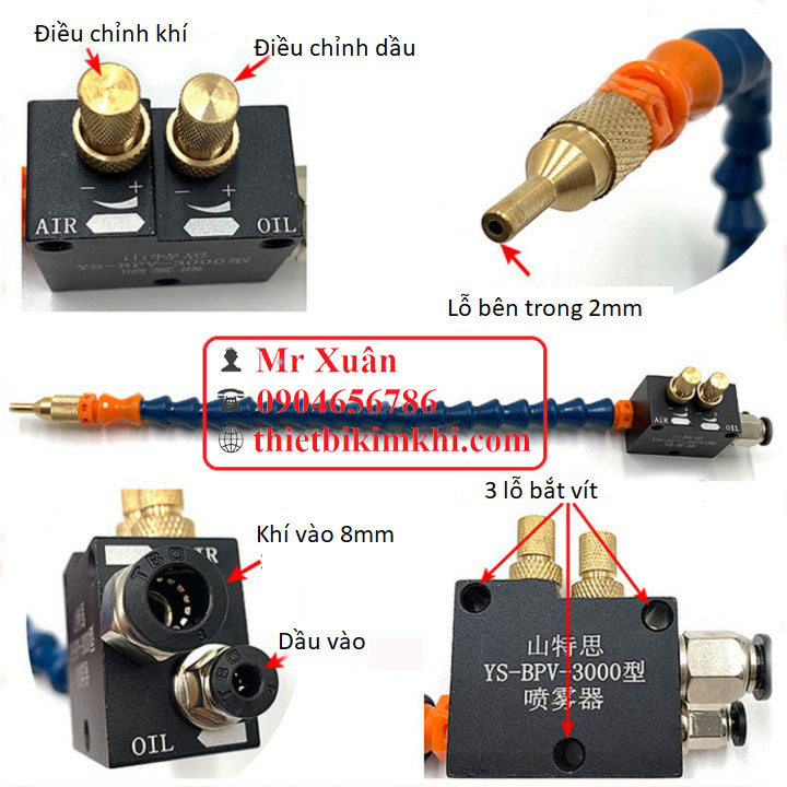 Bộ vòi phun sương hay còn gọi là bộ tưới nguội kiểu phun sương, vòi phun sương máy CNC, vòi phun sương có van điều chỉnh lưu lượng, vòi phun dầu có tiết lưu YS-BPV-3000, vòi phun làm mát YS-BPV-3000, vòi tưới nguội phun dầu làm mát CNC, vòi YS-BPV-3000 phun sương