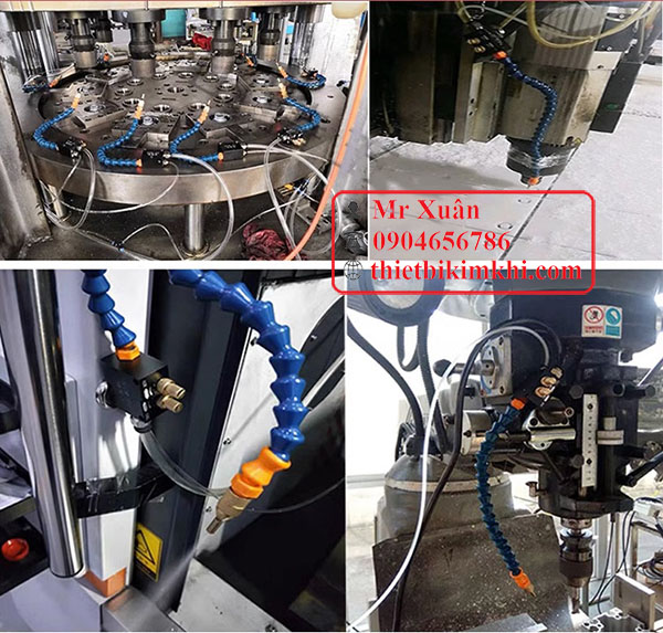 Đầu dầu vào thì ta cắm dây hút dầu cấp theo bộ vòi phun vào đó, đầu có đầu lọc thì thả vào bình dầu. Đầu khí vào 8mm kết nối với đường khí nén, giúp đẩy dầu từ dưới bình lên. Lượng khí nhiều hay ít sẽ quyết định vòi phun mạnh hay yếu, chỉnh núm dầu sẽ quyết định dầu phun nhiều hay ít qua lỗ 2mm trên vòi phun.