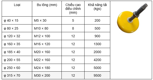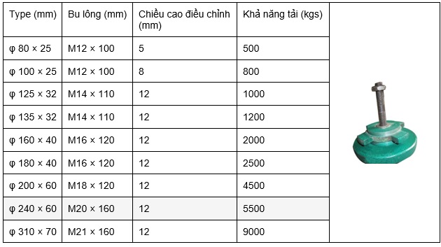 Chân đế cân bằng máy gồm nhiều loại khác nhau.