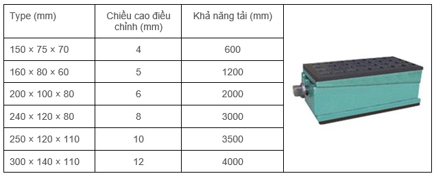 Đây là loại có thể điều chỉnh được thiết kế với cấu trúc 2 hoặc 3 lớp, hỗ trợ lắp đặt và điều chỉnh thiết bị máy công cụ