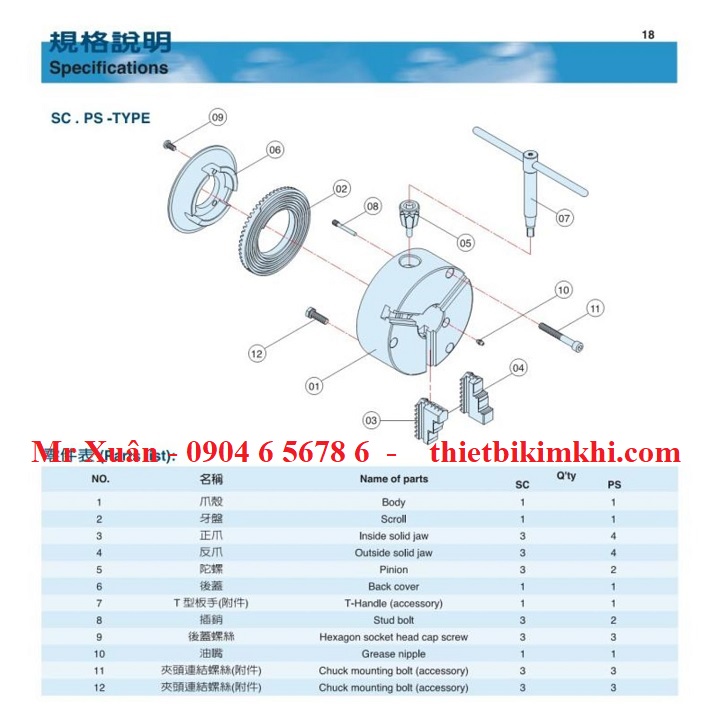 - Chấu cặp cho mâm cặp 3 chấu SC-12 chandox