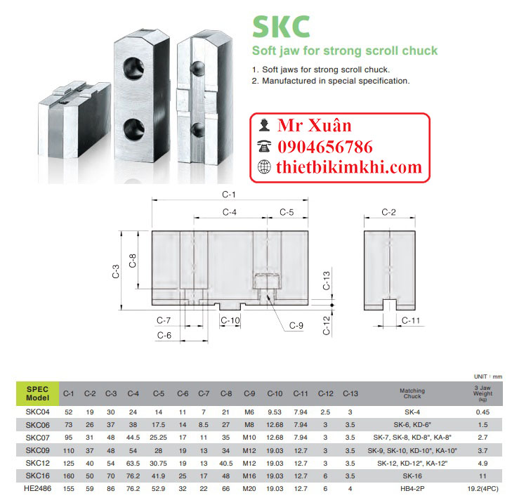 Như SKC07 cho mâm cặp SK-7, SK-8, KD-8, KA-8