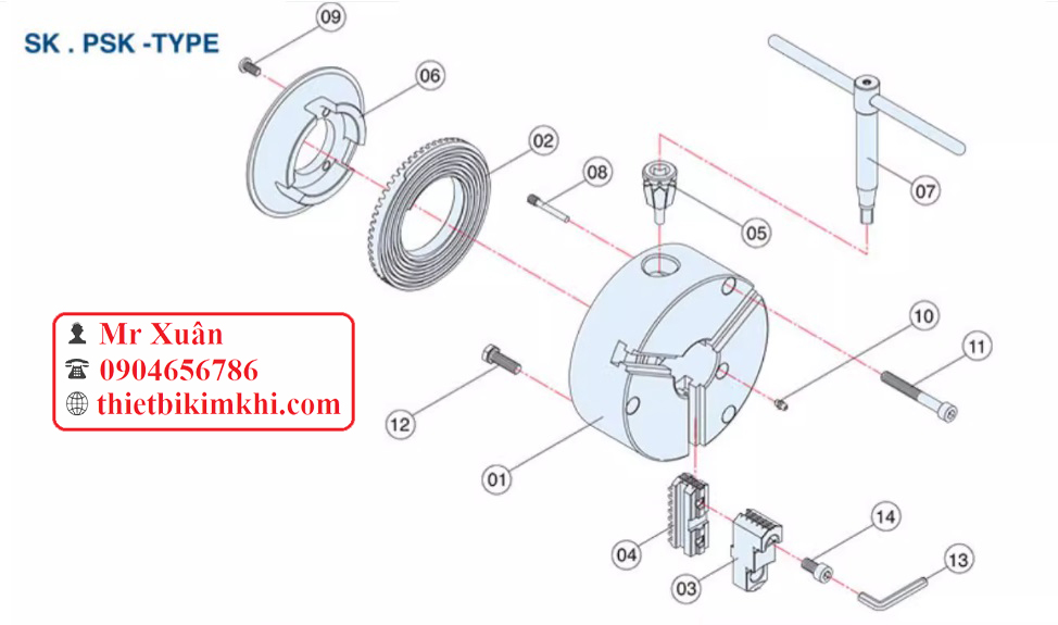 Trong đó 04 là phần đế chấu kẹp với mâm cặp SK thì gồm 3 chi tiết, mâm cặp PSK thì gồm 4 chi tiết.
