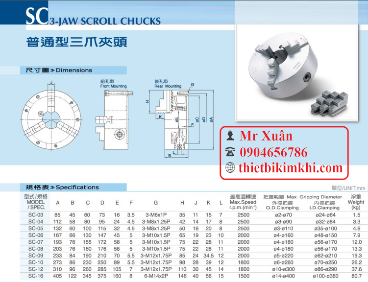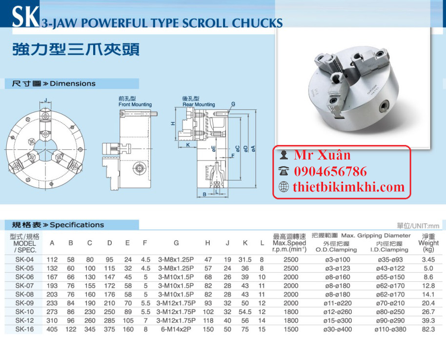 Gồm các model mâm cặp 3 chấu: SK-04, SK-05, SK-06, SK-07, SK-08, SK-09, SK-10, SK-12, SK-16