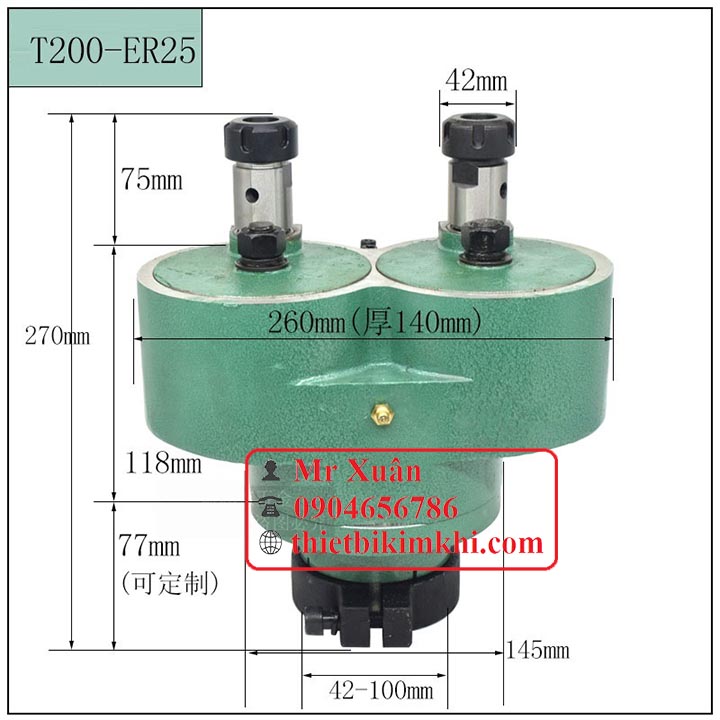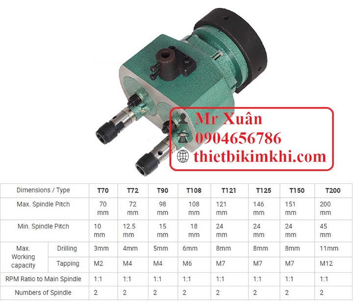 Đầu taro 2 trục gồm có rất nhiều loại khác nhau phụ thuộc vào phạm vi gia công gồm đường kính taro được và khoảng cách giữa 2 mũi taro.