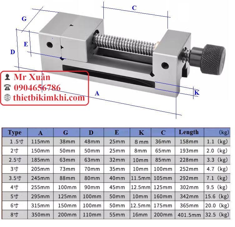 Thông số kỹ thuật của ê tô mài Trung Quốc