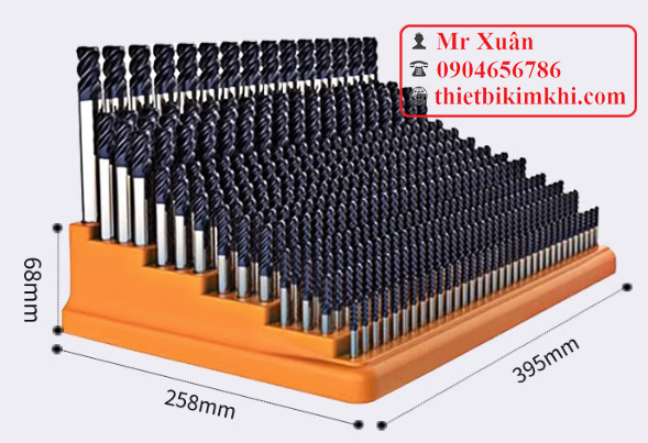 Khay cắm dao phay 4mm, 6mm, 8mm, 10mm, 12mm có số lỗ lần lượt là 464, 432, 276, 240 và 128 lỗ cắm.