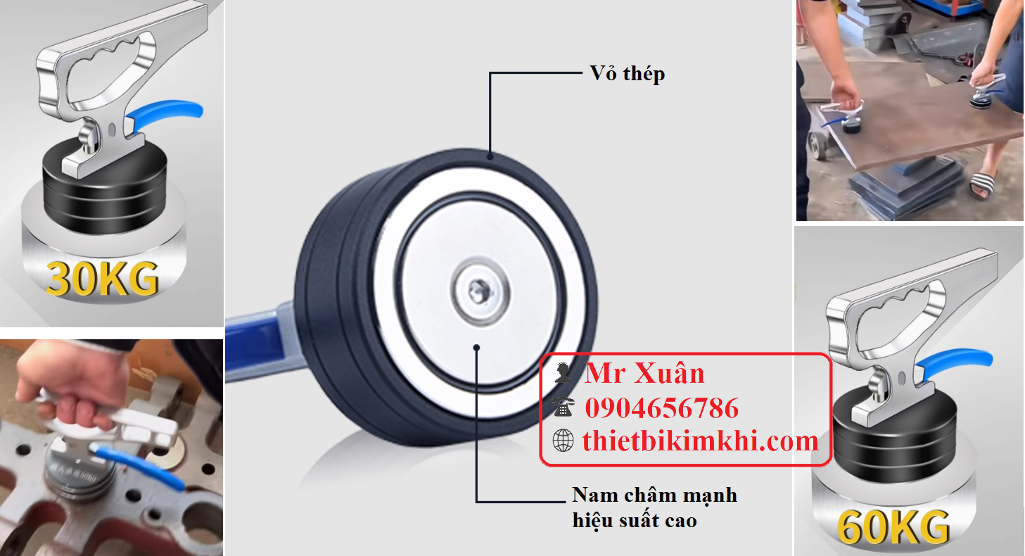 Với các tấm sắt dày sau cắt laser thường bị chìm xuống một chút rất khó để lấy ra khi không có khe để đưa tay vào được, dụng cụ nam châm nâng hạ phôi rất hữu ích trong trường hợp này.