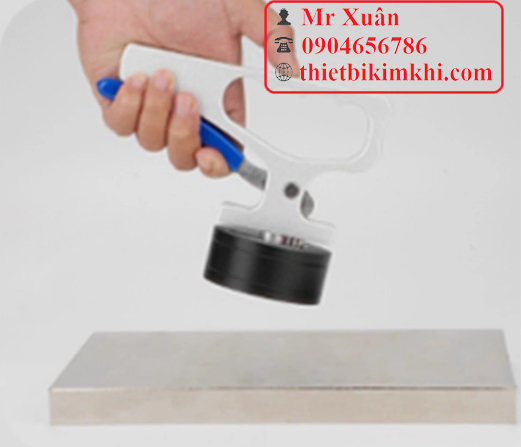 Bước 1: bóp tay cầm, đưa đầu nam châm vào vật liệu mà bạn muốn hút.