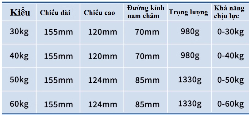 Gồm có các model tương ứng với các khả năng hút nâng giữ sản phẩm khác nhau.