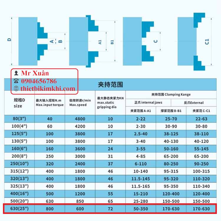 Với chấu kẹp thuận mâm cặp 630mm hay còn gọi là chấu kẹp phải