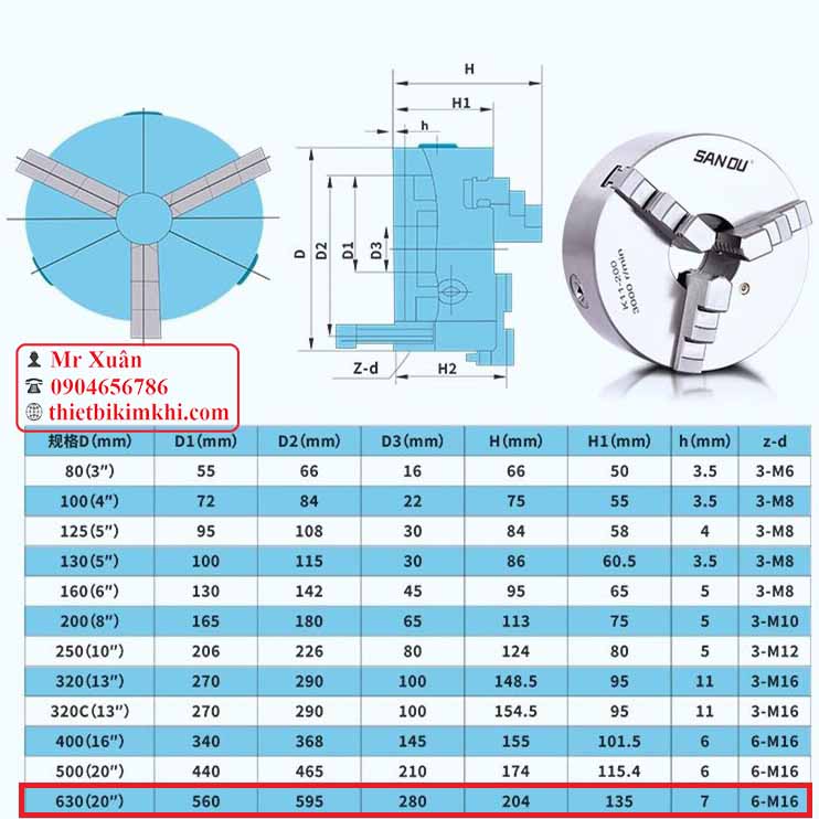 Mâm cặp 3 chấu đường kính mâm cặp 630mm model K11-630 hay còn gọi mâm cặp 3 chấu 630mm