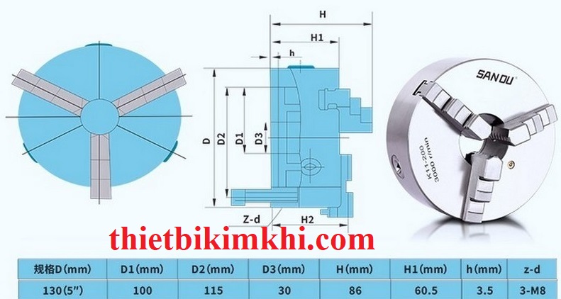 Mâm cặp 3 chấu đường kính mâm cặp 130mm model K11-130 hay còn gọi mâm cặp 3 chấu 130mm