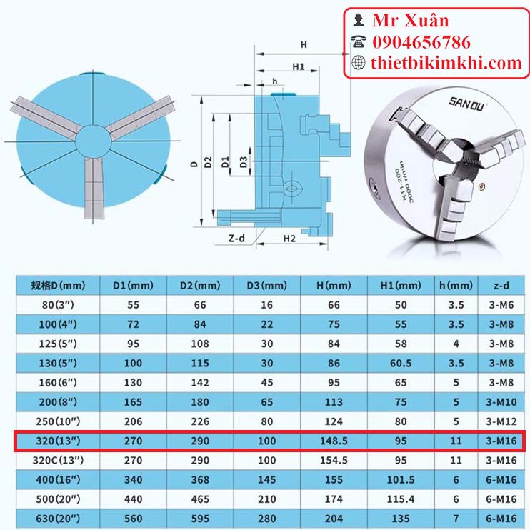 Mâm cặp 3 chấu đường kính mâm cặp 320mm model K11-320 hay còn gọi mâm cặp 3 chấu 320mm