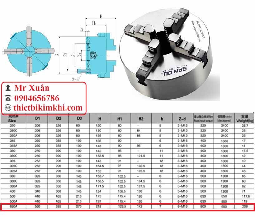 Với các dòng mâm cặp 4 chấu tự định tâm máy tiện đường kính mâm 630mm K12-630 có giá 81.600.000 VND.