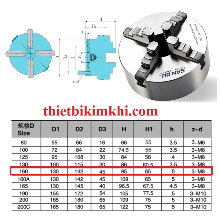 Bên cạnh dòng sản phẩm mâm cặp 4 chấu đường kính cặp 160mm K12-160 chúng tôi còn cung cấp các chủng loại