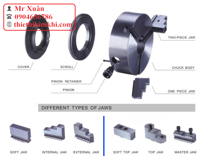 Hay còn gọi là mâm cặp chấu vặn ốc, mâm cặp 3 chấu vặn ốc, mâm cặp 3 chấu 400mm, mâm cặp 3 chấu 500mm, mâm cặp 3 chấu 630mm, mâm cặp 3 chấu tự định tâm, mâm kẹp chấu lật, mâm cặp 3 chấu kiểu C.