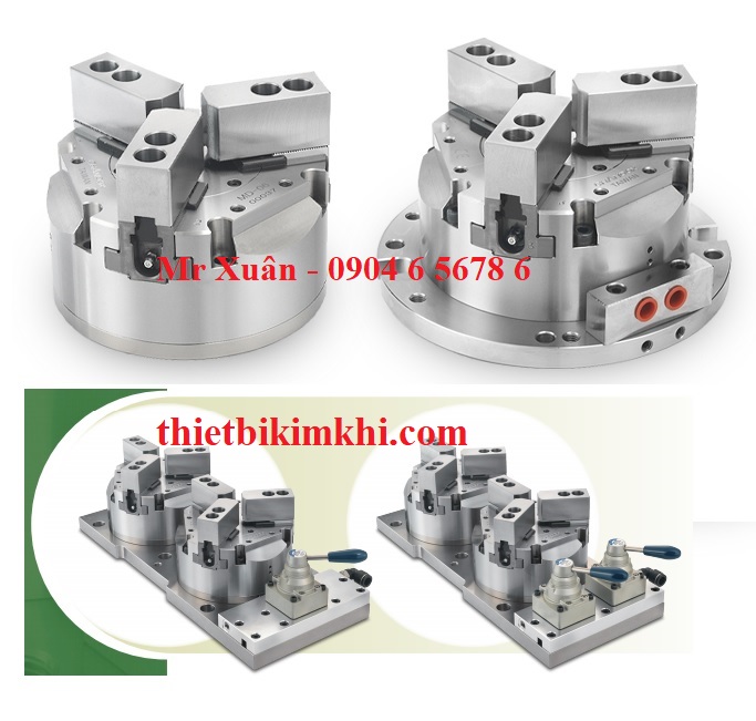 Mâm cặp khí nén cố định dùng cho máy phay loại 2 chấu và 3 chấu.