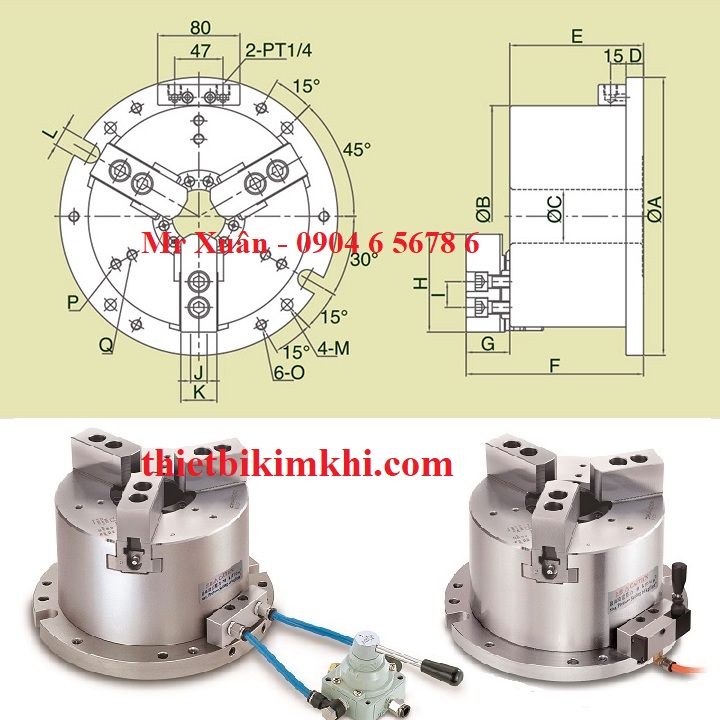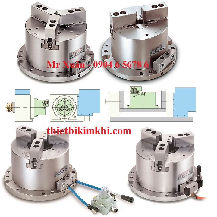 Đây là dòng mâm cặp khí nén Đài Loan, mâm sử dụng lực kẹp chấu cặp bởi lực kẹp khí nén
