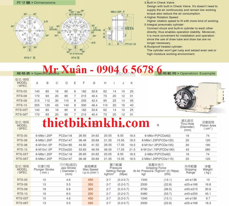 Mâm cặp khí nén quay đầu phân độ, mâm cặp đầu phân độ kẹp khí nén, mâm kẹp 3 chấu quay kẹp khí nén, mâm cặp khí nén dạng quay tốc độ thấp, mâm cặp khí nén tốc độ thấp dạng quay, mâm cặp khí nén tốc độ thấp lắp trên đầu phân độ, mâm cặp lắp trên đầu phân độ kẹp khí nén, mâm 3 chấu kẹp khí nén lắp trên đầu phân độ, mâm cặp RT-05, mâm cặp RT-06, mâm cặp RT-08, mâm cặp RTS-05, mâm cặp RTS-06, mâm cặp RTS-08, mâm cặp RTS-10, mâm cặp chandox, mâm cặp khí chandox, mâm cặp khí đầu phân độ.