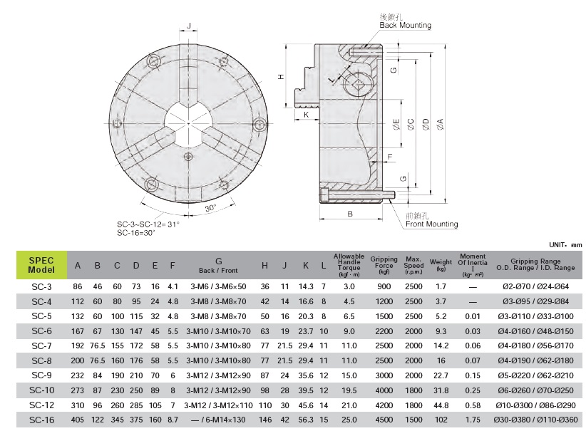 mâm cặp SC-3