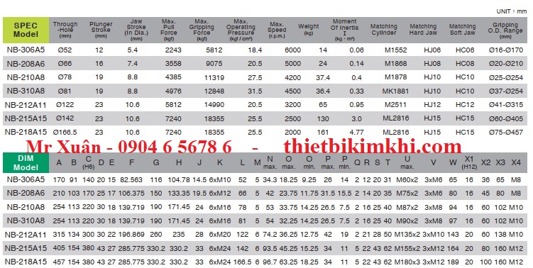 Ngoài ra còn có các mâm cặp model NB-310A8, NB-212A11, NB-215A15, NB-218A15