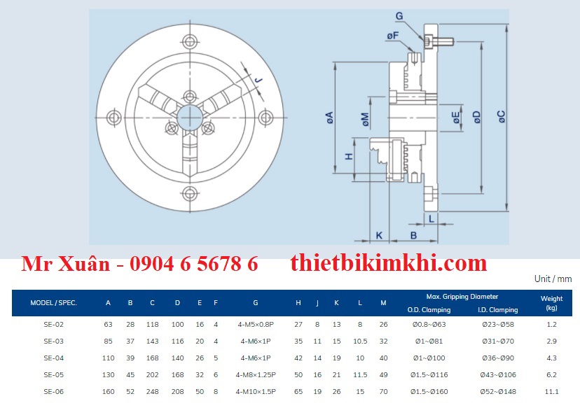 - Mâm cặp 3 chấu siêu mỏng SE