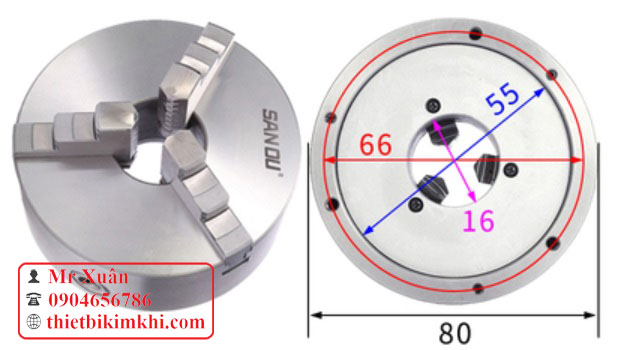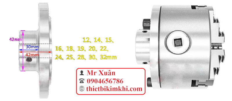 Có các kiểu mặt bích lỗ trục chính 16, 18, 19, 20, 22, 24, 25, 28, 30, 32mm. Dòng mâm cặp xuất hiện nhiều trên thị trường là mâm cặp Sanou có lỗ trục chính cỡ 30mm