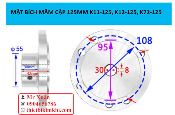 - Chọn đường kính ngoài phù hợp của mặt bích theo đường kính ngoài của mâm cặp (đường kính ngoài của mâm cặp = đường kính ngoài của mặt bích)