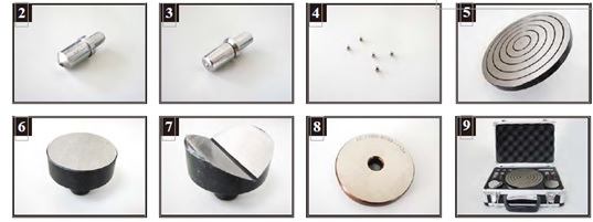 1.Main machine 2.Diamond rockwell indenter 3. 1.588mm diameter hard alloy steel ball indenter 4.1.588 mm diameter steel ball 5 pieces 5.Large testing table 6.Medium testing table 7.V-shaped testing table 8.Standard hardness blocks 3 pieces 9.Accessory case 10.Dust-proof cover 11.Instruction manual