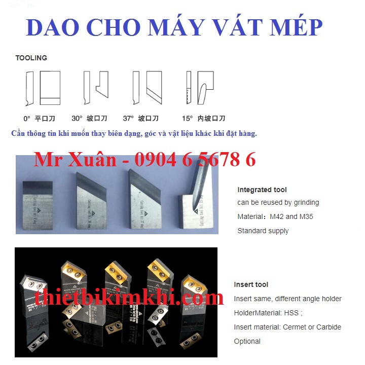 Góc vát của mặt mép ống phụ thuộc vào lựa chọn dao cụ để gia công. Thông thường hay sử dụng các dao 0 độ để vát phẳng, hay dao 30 độ, 37 độ, 15 độ để vát góc. Ngoài ra có thể làm dao theo yêu cầu để gia công các bề mặt mong muốn. Dao có 2 loại là dao hợp kim liền và dao gắn mảnh. Tùy thuộc vào nhu cầu gia công và vật liệu sản phẩm mà lựa chọn dao thích hợp