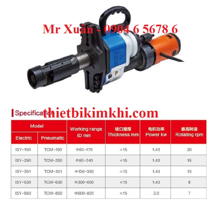Máy vát mép ống ISY-150 là máy vát mép chạy điện, với cùng thông số đó có máy vát mép chạy khí trong trường hợp yêu cầu chống cháy nổ