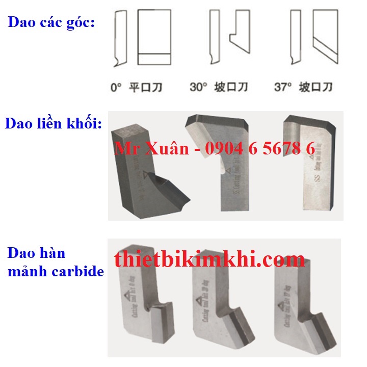 Đi theo máy có 3 dao vát mép với 3 góc độ khác nhau lần lượt là 0o, 30o, 37o nếu cần các biên dạng khác, góc vát khác và vật liệu đặc biệt bạn thông tin trước cho chúng tôi.