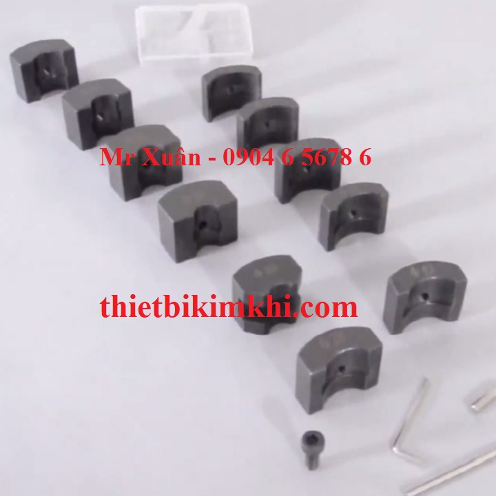 - Bộ khuôn kẹp ống cấp theo máy rất dễ gá kẹp đảm bảo chắc chắn trong quá trình vát mép ống. Chỉ cần đo đường kính ngoài của ống và chọn bộ gá kẹp phù hợp.