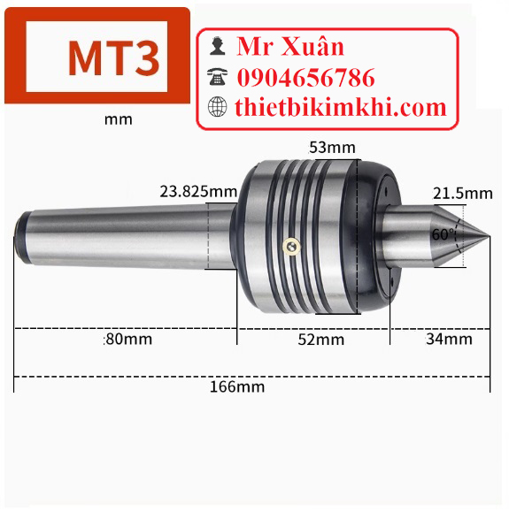 Mũi chống tâm quay MT3 có đường kính phần lớn nhất của chuôi là 23.825mm