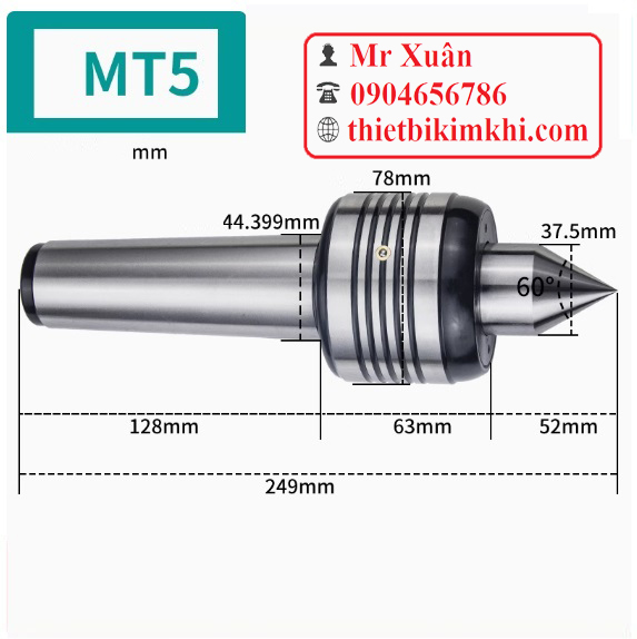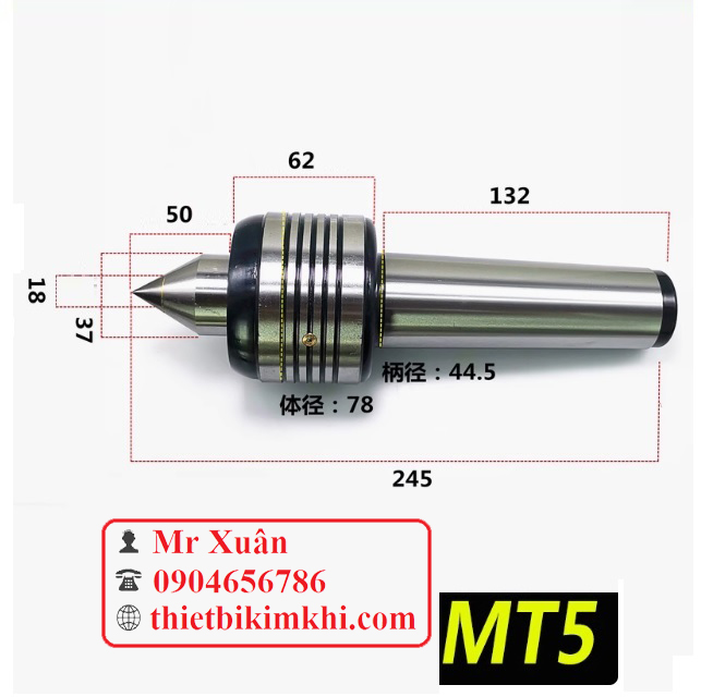 Mũi chống tâm quay MT5 có đường kính phần lớn nhất của chuôi là 44.399mm
