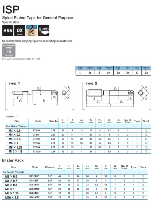 ISP là mũi taro tốt nhất cho lỗ bít được sử dụng trên tốc độ cắt thấp với máy khoan