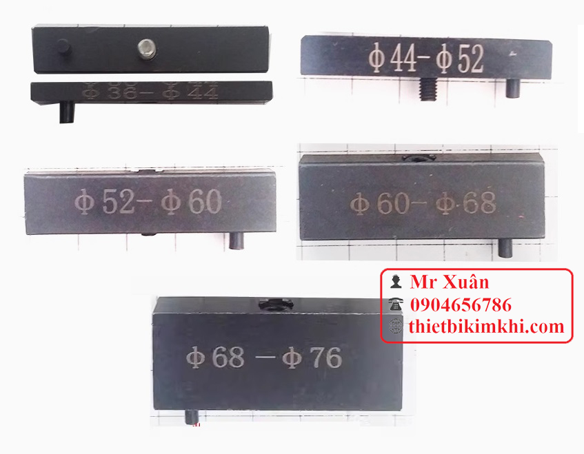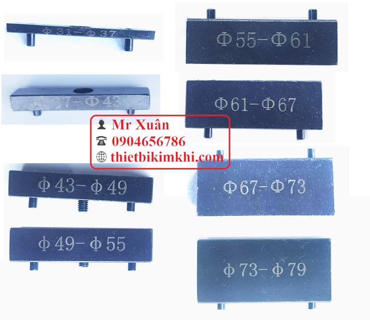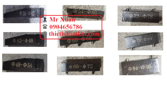 Gồm các bộ căn hay má kẹp cho ống đường kính 31-37mm, 37-43mm, 43-49mm, 49-55mm, 55-61mm, 61-67mm, 67-73mm, 73-79mm.