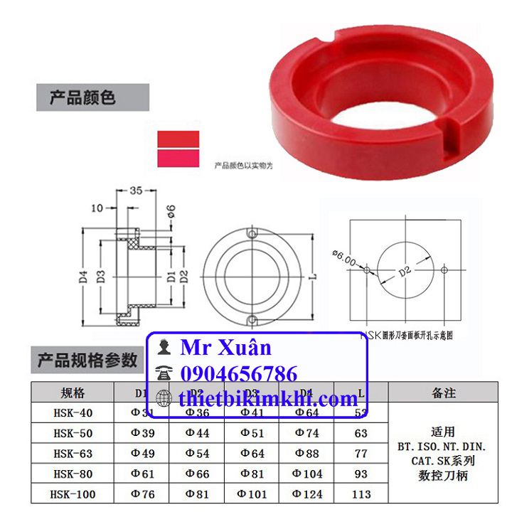 Các thông số kỹ thuật của đế nhựa gá dao HSK50