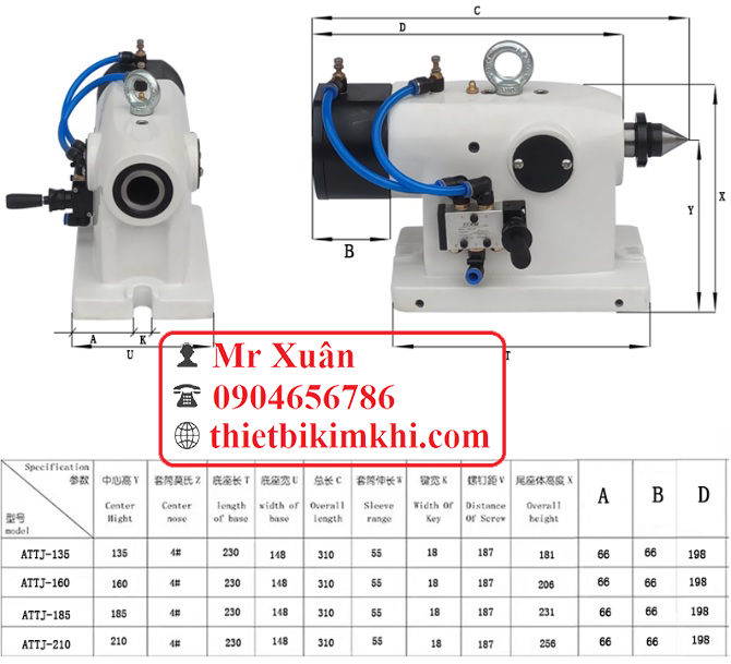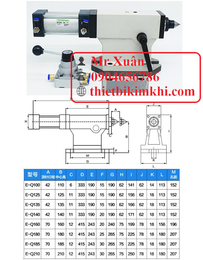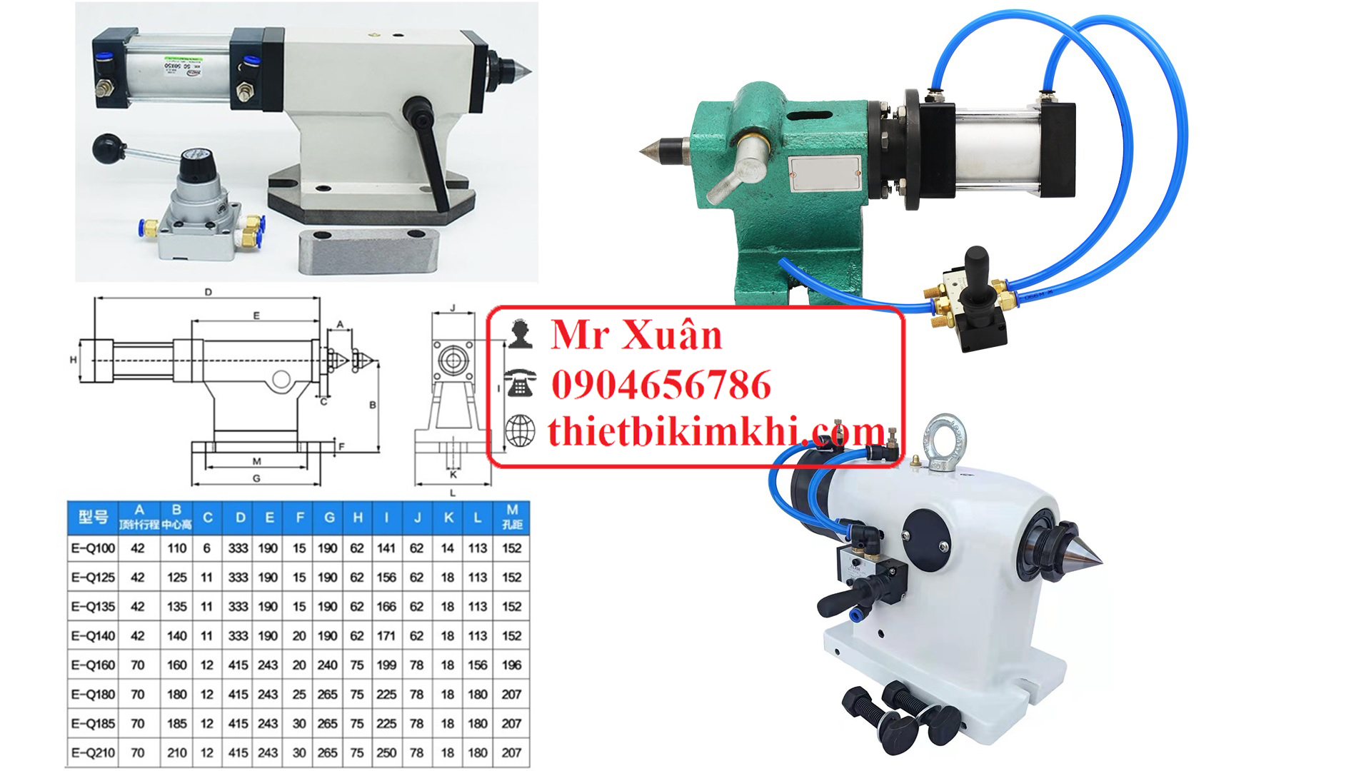 - Ụ động khí nén Đài Loan là loại ụ động có độ chính xác cao, có chiều cao tâm 135mm, 160mm, 185mm, 210mm với côn số 4
