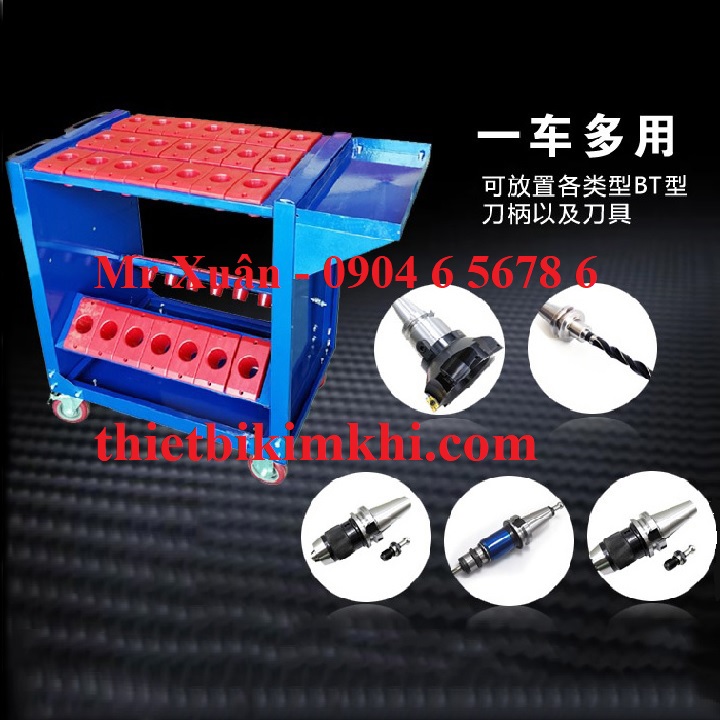 Với các sản phẩm đơn giản thì thể dùng 1 dao nhưng với các sản phẩm phức tạp cần đến rất nhiều loại dao với các kích thước khác nhau như dao phay ngón, dao phay khỏa mặt, mũi khoan, mũi taro, ...Trong khi trên các máy CNC thường bố trí 14, 16, 18,20, 24, ... vị trí dao nhưng cũng không thể đáp ứng được hết các kích thước đó. Ngoài các dao lắp trên đài dao vẫn còn những dao để bên dưới và cần được lưu trữ một cách khoa học để dễ dàng tìm kiếm và tránh hỏng, thất lạc. Xe đẩy để chuôi dao chính là dụng cụ đáp ứng yêu cầu đó. Trên xe để chuôi BT có rất nhiều các vị trí để chuội dao theo đúng côn BT của máy nhằm đảm bảo lưu trữ dao tốt nhất mà các khay hay dụng cụ khác không đáp ứng được với đặc thù chuôi côn tròn của chuôi dao BT.