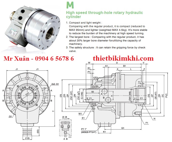 Xy lanh quay thủy lực trục rỗng tốc độ cao cho mâm căp máy tiện CNC dòng M là một dòng của hãng sản xuất mâm cặp Auto Strong Đài Loan