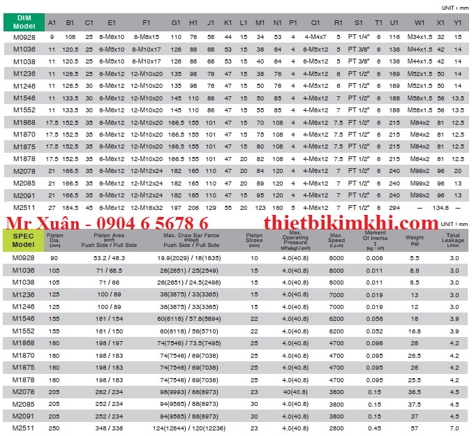 Ngoài ra còn có các xy lanh quay trục rỗng khác của Auto strong model M0928, M1038, M1236, M1546, M1868, M1870, M1875, M1878, M2078, M2085, M2091, M2511.